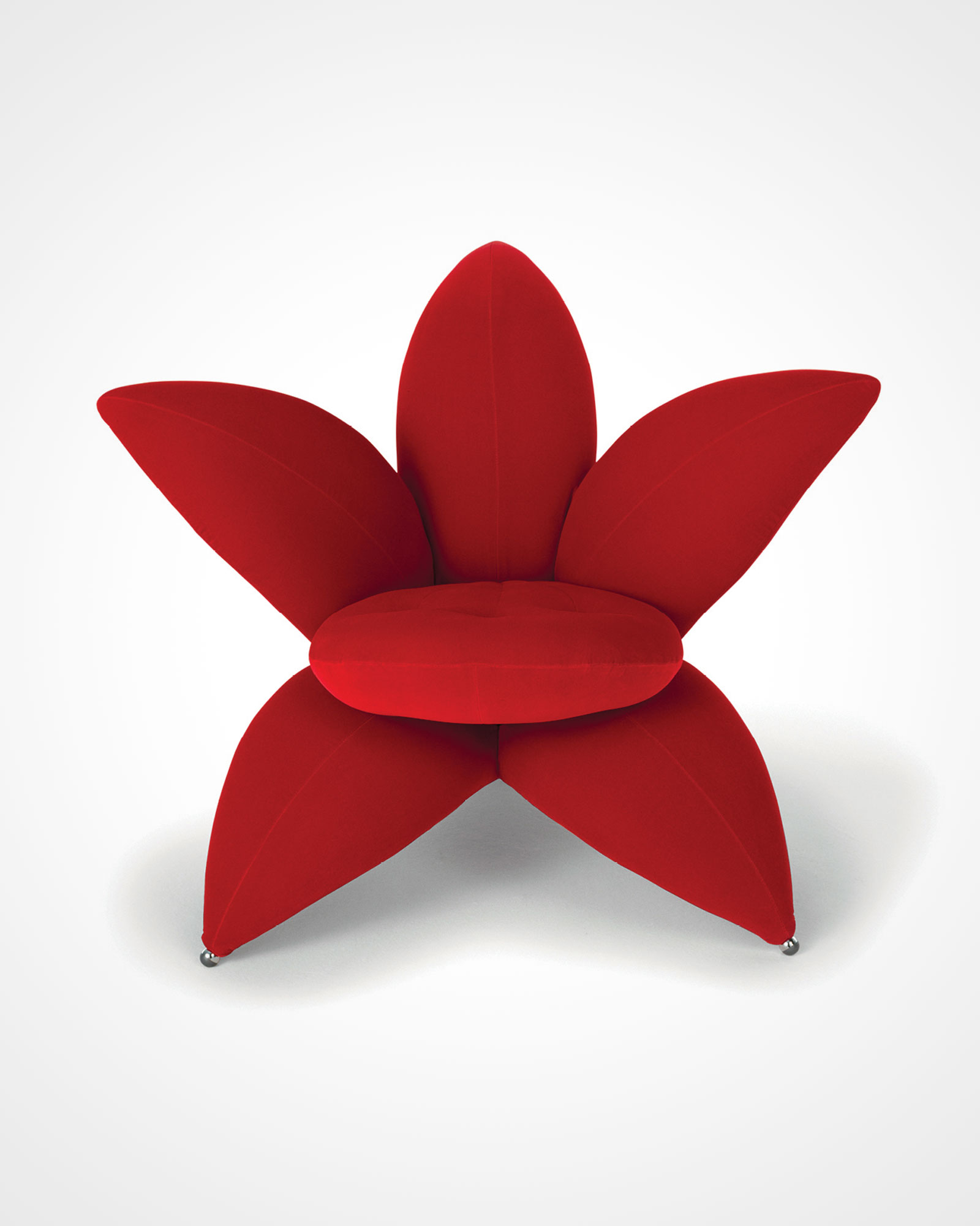 Delicate in appearance, in the shape of a lily, this chair hides a solid frame of molded steel.